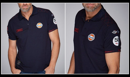 Polo homme Gulf Steve McQueen Matière 65% Coton / 35% Polyester - Couleur Bleu Marine Surpiqûres matelassée sur les épaules 89,90 € TTC / Incl. Taxes