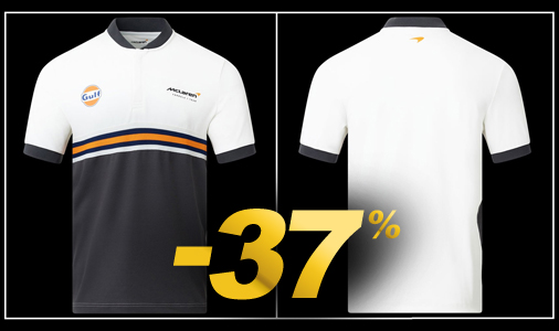 Polo homme Gulf McLaren F1 Couleur Blanc / Noir / Orange - Matière 100% Coton McLaren TM3409