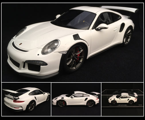 Porsche propose une nouvelle série de la 991 GT3 RS au 1/18 en blanc, avec boite vitrine et socle numéroté.