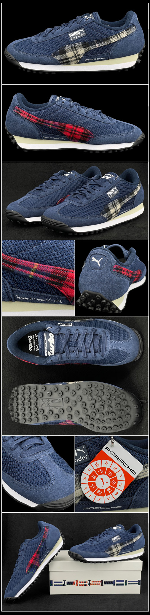 Chaussures homme Porsche 911 Turbo Insert aux couleurs Tartan Ecossais, en référence à l'intérieur de la 1ère Porsche 911 Turbo Matière cuir de vache et textile - Doublure en textile - Semelle en Caoutchouc Couleur Bleu Marine - Inclus deux paires de lacets Bleu Marine / Noir Puma 308564-01 119,95 € TTC / Incl. Taxes
