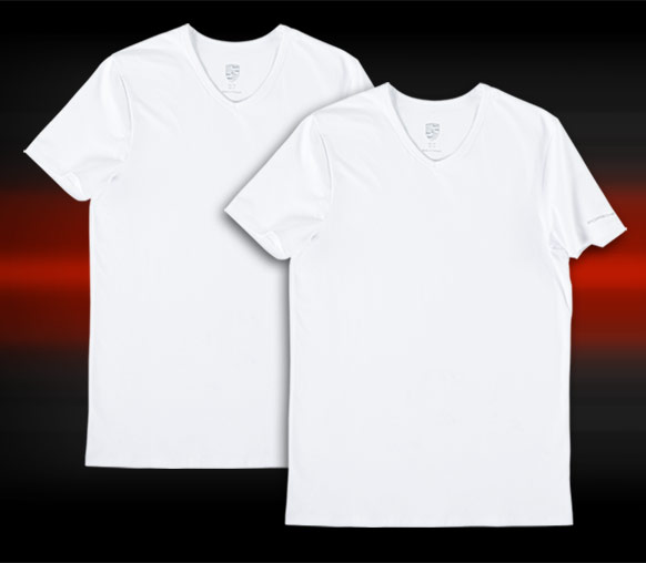 Set 2 T-shirts Porsche Essential Matière 96% Coton / 4% Elasthanne doux au toucher Col V peu profond Couleur blanc Porsche WAP820