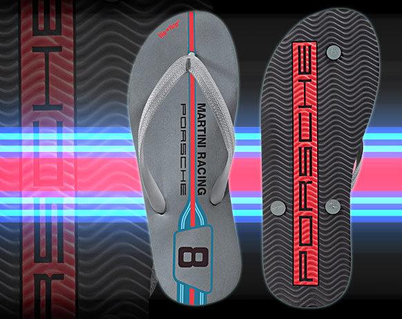 Tongs Porsche Martini Racing Sandales Flip Flop originales Couleur Martini Racing n° 8 Logo Porsche sous la semelle Porsche WAP8936380D