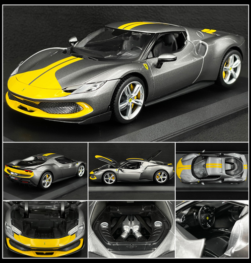 Ferrari 296 GTB Assetto Fiorano 2022 Gris Argent / Jaune 1/18 - Bburago 16017GR 64,95 € TTC / Incl. Taxes