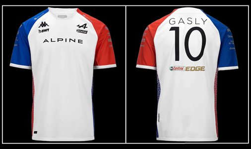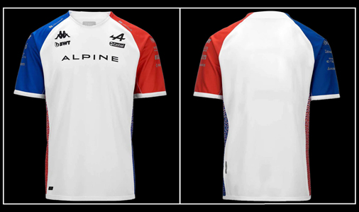 T-shirt homme Pierre Gasly Alpine F1 n°10 by Kappa Matière 100% polyester - Couleur Bleu / Blanc / Rouge Kappa 321M6RW 74,95 € TTC / Incl. Taxes