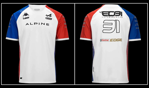 T-shirt homme Esteban Ocon Alpine F1 n°31 by Kappa Matière 100% polyester - Couleur Bleu / Blanc / Rouge Kappa 381N5KW 74,95 € TTC / Incl. Taxes
