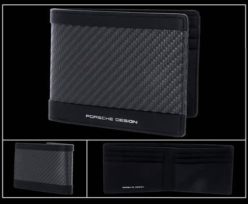 Portefeuille Porsche Carbone & Cuir H6 En fibre de carbone et cuir Nappa - Couleur noir - Protection RFID Dimensions 8.5 x 11 x 2 cm - 6 poches de cartes de crédit - 1 poche billets Porsche Design 4090002732