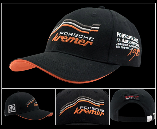 Casquette Porsche Kremer Racing Hommage aux deux victoires de Bob Wollek en 1981 au volant de la Porsche 935 K4 n°52 Taille unique réglable par boucle Matière 100 % Coton - Couleur noir / orange 24,95 € TTC / Incl. Taxes