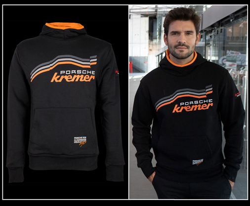Hoodie homme Porsche Kremer Hommage aux deux victoires de Bob Wollek en 1981 au volant de la Porsche 935 K4 n°52 En molleton épais - Matière 80% coton, 20% polyester Poche kangourou - Couleur noir 64,95 € TTC / Incl. Taxes