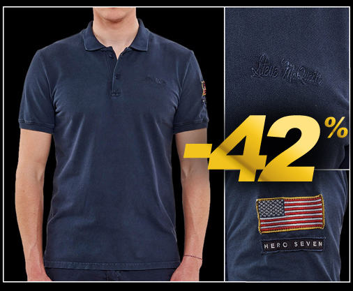Polo homme Steve McQueen Monogramme Steve McQueen sur le devant - Drapeau US brodé sur la manche Effet délavé vintage - Matière 100% toile de coton Couleur Bleu marine