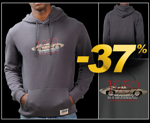 Hoodie homme Corvette Stingray 1959 Capuche avec cordons de serrage - Matière 100% coton Couleur Gris - Hero Seven H22419