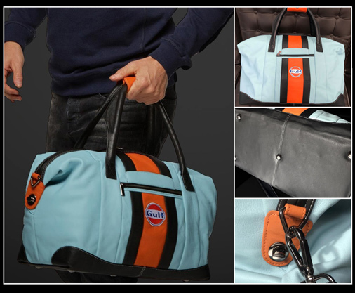 Sac de Voyage Medium en cuir Gulf Bandoulière cuir réglable avec protection - Poignées cuir avec protection 2 poches zippées à l'extérieur - 2 poches à l'intérieur dont 1 zippée Fond renforcé avec pieds métal - Logos Gulf brodés Couleur bleu Gulf / intérieur orange - Matière 100% Cuir / Doublure 100% Coton Dimensions 41 x 33 x 20 cm 189 € TTC / Incl. Taxes