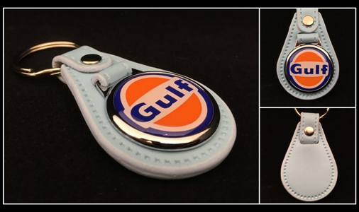 Porte-clés Gulf écusson Couleur bleu Gulf - Pièce de cuir de 6,5 x 4,4 cm - Ecusson métal de 3,5 cm 14,95 € TTC / Incl. Taxes