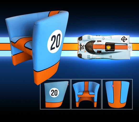 Fauteuil cabriolet Racing Inside n°20 en cuir Couleur: bleu Racing team / orange Structure en panneaux de particules - Revêtement 100% cuir Dimensions: Longueur 70 cm x Hauteur 80 cm x Profondeur 75 cm Fabriqué à la main dans l'Union Européenne 599,95 € TTC / Incl. Taxes