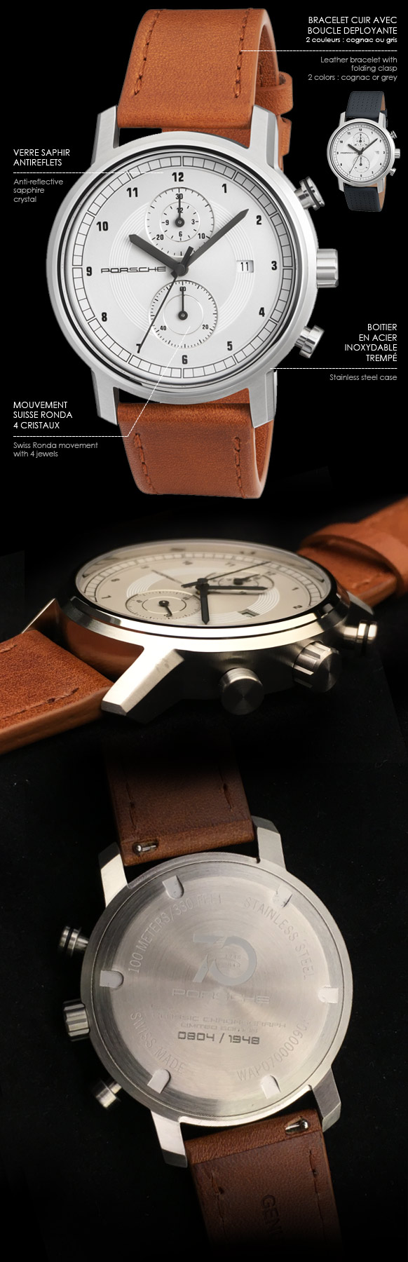 Montre Chronographe Porsche Classic Edition limitée 70 ans Porsche