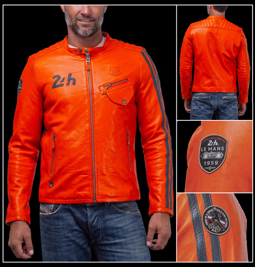Veste en cuir homme 24h Le Mans Matière 100% cuir d'agneau de qualité - Doublure 100% Coton / Manches Polyester Couleur Orange - Coupe Regular - Col pressionné - Fermeture zippée 2 poches zippées - 1 poche poitrine - 2 poches intérieur Classic Legend Motors 27272-1206 459,95 € TTC / Incl. Taxes