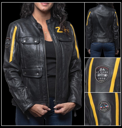 Veste en cuir femme 24h Le Mans Matière 100% cuir d'agneau de qualité - Doublure 100% Coton / Manches Polyester Couleur Noir - Coupe Regular - Col pressionné - Fermeture zippée 2 poches boutonnées - 1 poche poitrine - 2 poches intérieur Classic Legend Motors 27275-1504 389,95 € TTC / Incl. Taxes