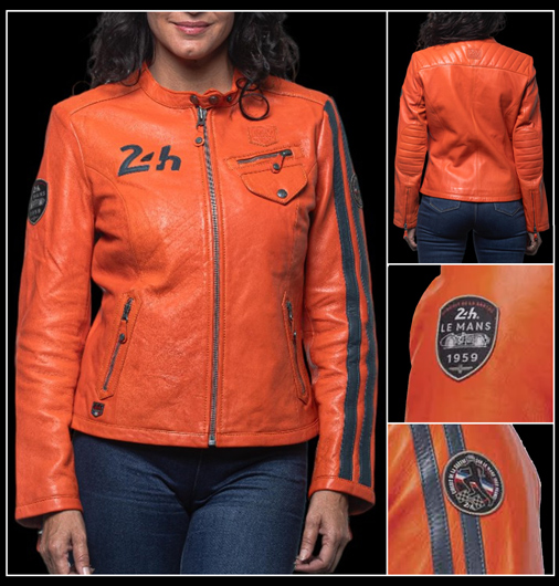 Veste en cuir femme 24h Le Mans Matière 100% cuir d'agneau de qualité - Doublure 100% Coton / Manches Polyester Couleur Orange - Coupe Regular - Col pressionné - Fermeture zippée 2 poches zippées - 1 poche poitrine - 2 poches intérieur Classic Legend Motors 27276-1206 439,95 € TTC / Incl. Taxes