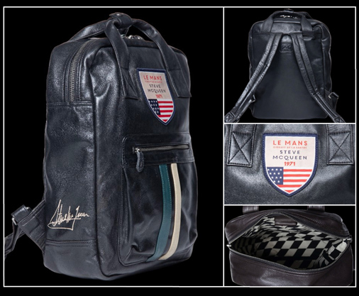 Sac à dos en cuir 24h Le Mans Steve McQueen Matière 100% Cuir de mouton - Intérieur 100% Coton - Grand contenant interne zippé Couleur Noir - Dimensions 37 x 29 x 12 cm - Poids 1 kg - 2 bretelles réglables 1 poche zippée sur le devant - 2 poches intérieures Classic Legend Motors 27280-1504 384,95 € TTC / Incl. Taxes