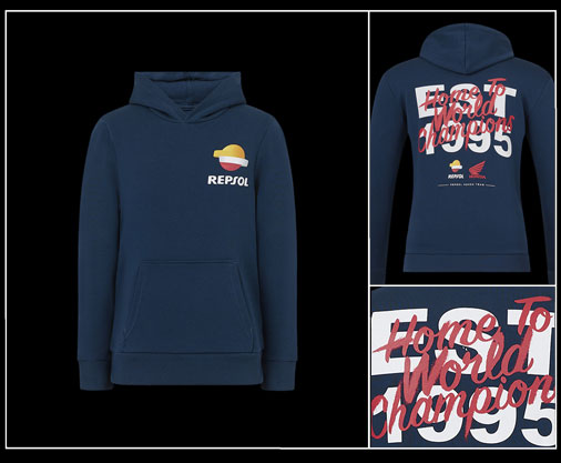 Hoodie mixte Repsol Honda Moto GP Capuche avec cordons de serrage - Grande poche centrale Couleur Bleu Pageant - Matière 80% Coton / 20% Polyester Honda Racing TM6852-190 79,95 € TTC / Incl. Taxes
