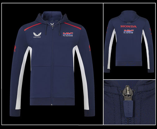 Hoodie mixte Honda HRC Moto GP Fermeture par zip - Capuche avec cordons Couleur Bleu Iris / Noir - Matière 100% Polyester Honda Racing TU5834RE-190