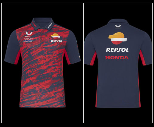Polo homme Repsol Honda Moto GP Couleur Bleu Iris / Rouge Flamme - Matière 88% Polyester / 12% Elasthane Honda TU8068RE-105