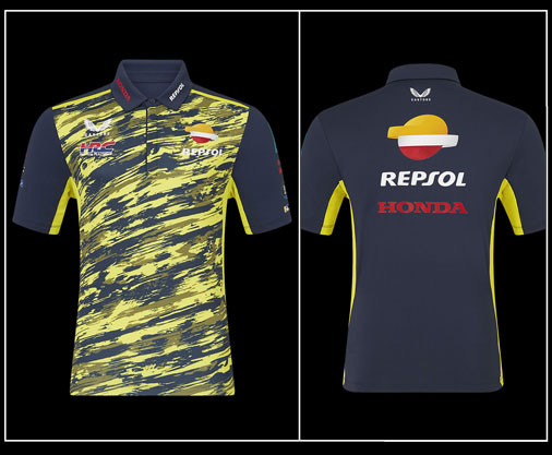 Polo homme Repsol Honda Moto GP Couleur Bleu Iris / Jaune sécurité - Matière 88% Polyester / 12% Elasthane Honda TU8069RE-063