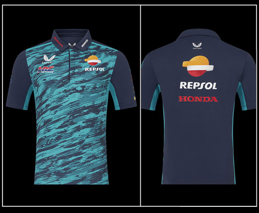 Polo homme Repsol Honda Moto GP Couleur Bleu Iris / Bleu Turquoise - Matière 88% Polyester / 12% Elasthane Honda TU8090RE-177