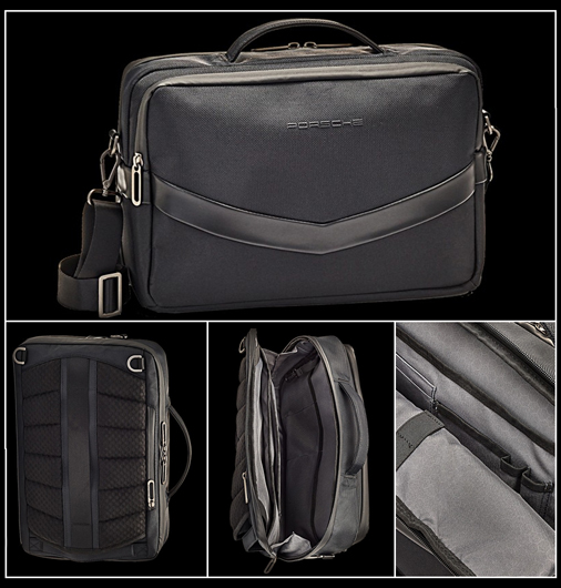 Sac Porsche 2 en 1 Laptop / Messenger Sacoche à ordinateur portable haut de gamme - Couleur Noir - Dimensions 40 × 12 × 25 cm Multiples poches et rangements : smartphones, stylos, cartes de visite et câbles Matière polyester recyclé - Poids 1,2 kg - Bandoulière amovible réglable Porsche WAP0359450NSCH 199,95 € TTC / Incl. Taxes
