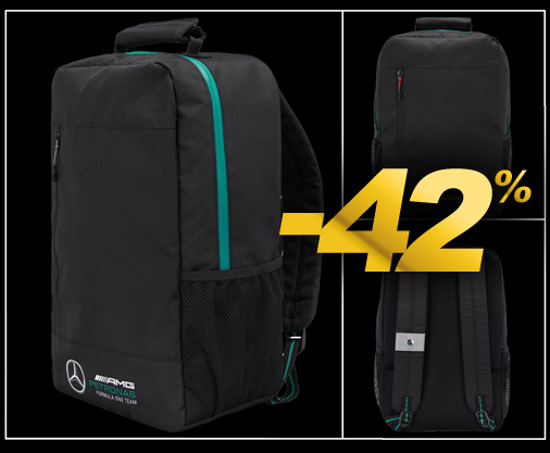 Sac à Dos Mercedes-AMG F1 1 poche principale et avant zippée, 2 filets latéraux - Bretelles réglables rembourrées Poche interne zippée avec compartiments de rangement - Matière 100% Polyester Mercedes-AMG 701202222-001