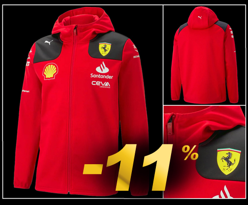 Veste homme Ferrari F1 Veste softshell imperméable à capuche - Couleur Rouge - Matière 100% polyester Fermeture principale zippée - Poignets élastiqués Ferrari 701223380-001