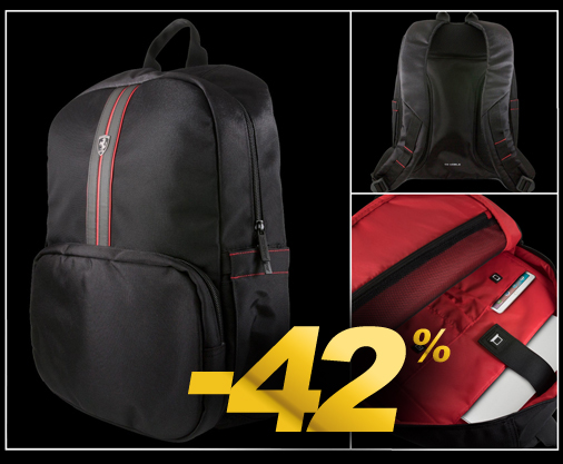 Sac à Dos Ferrari Compartiment ordinateur jusqu'à 15" - Poche intérieure pour stylos - Fermeture par zip Couleur Noir / Rouge - Matière 100% Polyester Ferrari FEURBP15BK