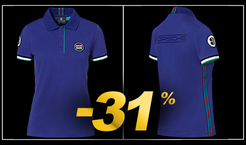 Polo femme Porsche Martini Racing - Tailles XS / L / XL seulement Couleur Bleu cobalt / détails vert - Matière 95% coton / 5% elesthanne Porsche WAP921LMRH