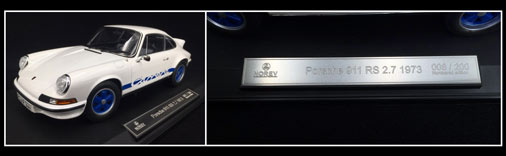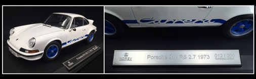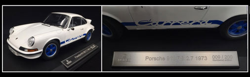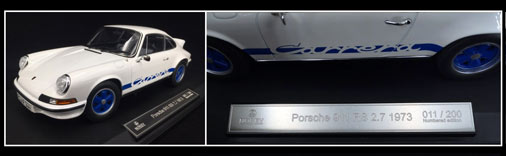Porsche 911 Carrera RS 2.7 Touring blanche / bleu - 1 : 18 - modèle rare limité à 200 ex. - Numéro 009/200