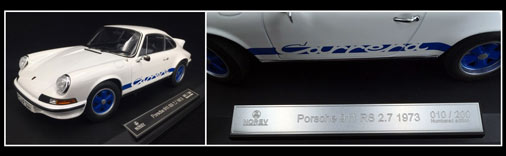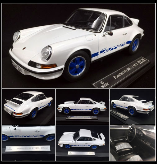 Porsche 911 Carrera RS 2.7 Touring blanche / bleu - 1 : 18 - modèle rare limité à 200 ex. - Numéro 007/200 La Porsche de James Bond ?