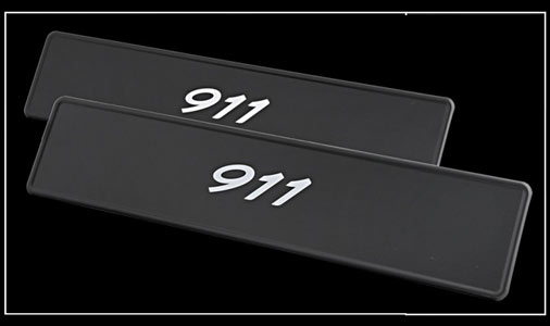 Plaque d’immatriculation Porsche 911 Couleur Noir / Blanc Dimensions 11 x 52 cm Lot de deux exemplaires Porsche PCG70191100 49,95 € TTC / Incl. Taxes