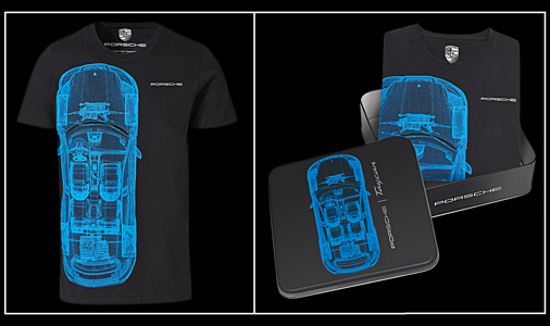 T-shirt mixte Porsche Matière 100% Coton doux au toucher - Couleur noir / bleu électrique Présenté dans une boîte métallique exclusive Carte postale avec explication du motif incluse Porsche WAP608