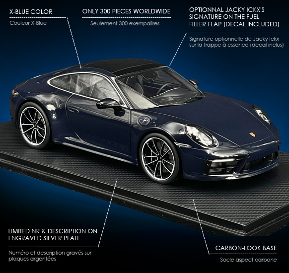 Porsche 911 Carrera 4S - Jacky Ickx Belgian Legend Edition 2020 X-Blue 1/18 - Spark 18RSF001 Edition limitée - 300 exemplaires numérotés 299,95 € TTC / Incl. Taxes