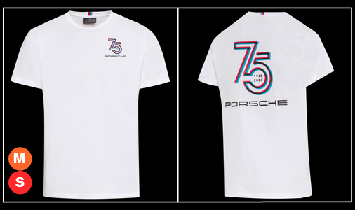 T-shirt homme Porsche 75 years - Tailles S / M Seulement Matière 100% coton jersey - Couleur Blanc Porsche WAP1300P75Y 49,95 € TTC / Incl. Taxes