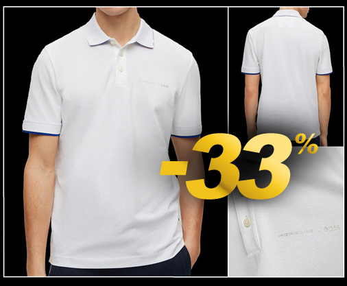 Polo homme Porsche x BOSS Matière 94% Coton mercerisé / 6% Élasthanne - Couleur Blanc - Poignet 100% Coton Col 98% Coton / 2% Élasthanne - Standard / Regular fit - Finition anti-transpiration BOSS PARLAY 260_PS 50486178_100