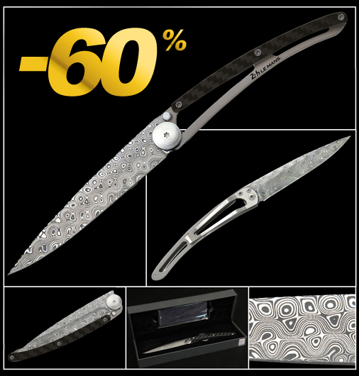 24h Le Mans 100 Years Deejo Knife - Damascus Blade & Carbon Fiber Handle