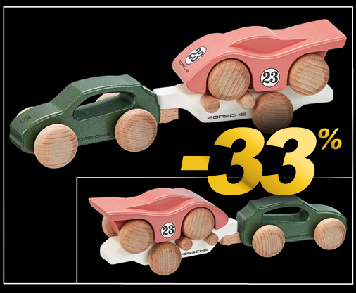 Porsche Macan Wooden Car with Porsche 917 on Trailer