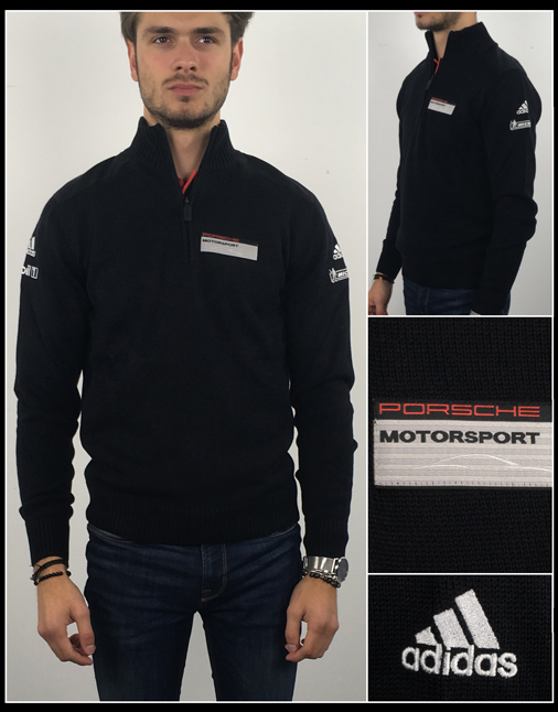 Pull homme Porsche Motorsport Adidas Coupe sport avec col camionneur zippé Bords côtes et empiècement épaules - Couleur Noir Matière 50 % Coton / 50% Acrylique Porsche Design WAX10101