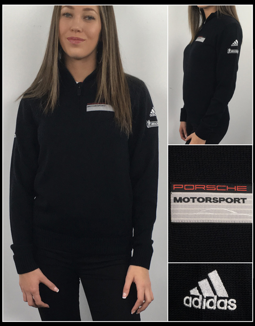 Pull femme Porsche Motorsport Adidas Coupe sport avec col camionneur zippé Bords côtes et empiècement épaules - Couleur Noir Matière 50 % Coton / 50% Acrylique Porsche Design WAP10101