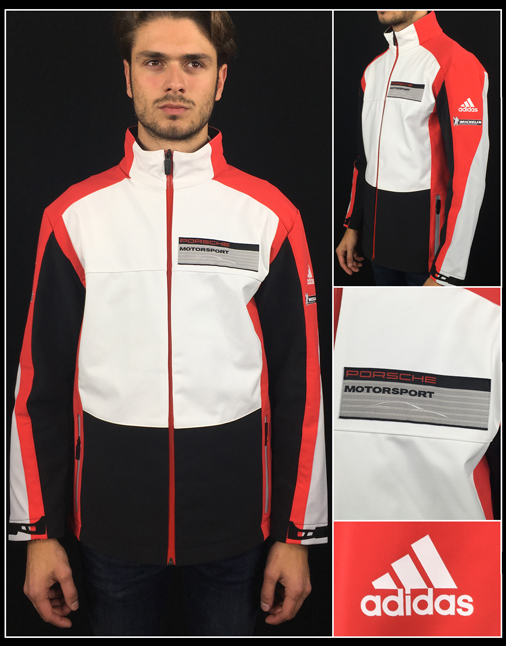 Veste homme Porsche Motorsport Adidas Couleur Noir / blanc / rouge / gris - Matière 77 % nylon / 23 % Elasthanne Coutures et fermetures étanches - Pattes de serrages aux manches 2 poches extérieures - 1 poches intérieure fermée Porsche Design WAX20104