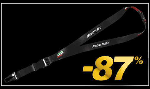 Porte-clés lanière Sergio Perez F1 Matière 100% Polyester - Boucle métal - Fermeture snap Dimensions 15 x 5 x 5 cm - Couleur Noir / Blanc Force India 263491008-100