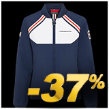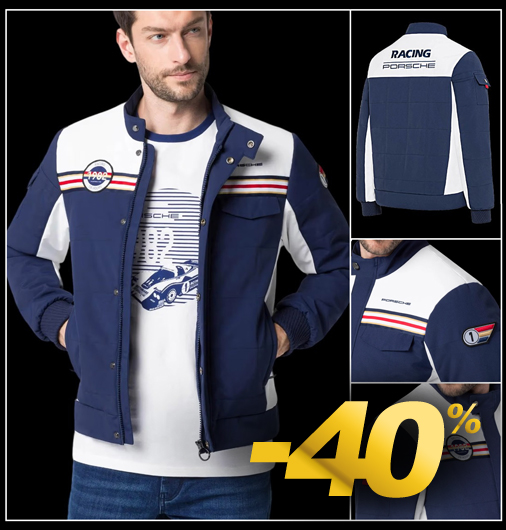 Veste homme Porsche Racing Fermeture par zip et pressions - 2 poches latérales - 1 poche intérieure zippée 1 poche sur la poitrine - Couleur Bleu / Blanc / Rouge - Matière 100% Nylon Porsche WAP453NRTM