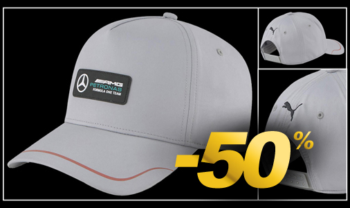 Casquette Mercedes-AMG F1 Matière 100% polyester - Taille réglable - Couleur Gris Puma 024485-02
