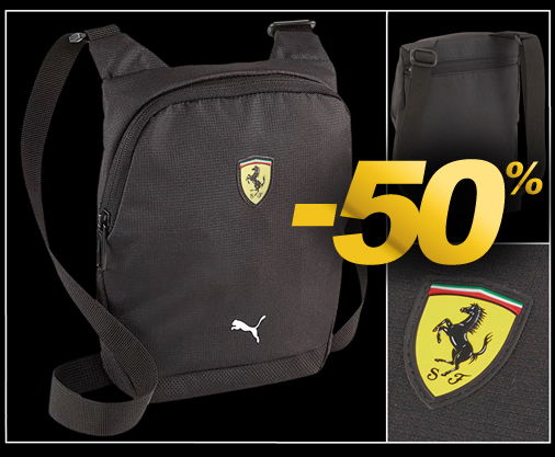 Sacoche à Bandoulière Ferrari Matière 100% Polyester - Dimensions 28 x 3 x 20 cm - Couleur Noir Sangle réglable - Poche principal zippé - 2 compartiments intérieurs avec séparateur Seconde poche avec zip à l'arrière Ferrari 09029302