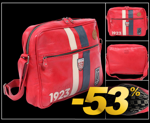 Sac Messenger en Cuir 24h Le Mans Matière 100% Cuir de mouton - Doublure 100% Coton - Couleur Rouge Bandoulière réglable - Dimensions 42 x 31 x 8 cm - Grand compartiment zippée 1 poche zippées à l'avant - 1 poche intérieure zippée Classic Legend Motors 27269-0282