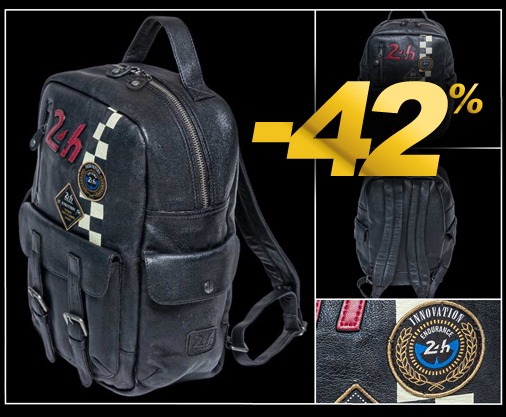 Sac à Dos en Cuir 24h Le Mans Matière 100% cuir de mouton - Doublure 100% Coton - Couleur Noir Grand compartiment zippé - Dimensions 26 x 37 x 16 cm - Bretelles réglables 1 poche à l'avant zippée - 2 poches latérales Classic Legend Motors 27468-3046
